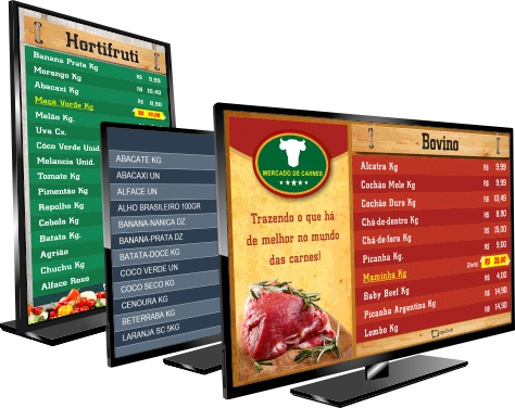Controle tudo via internet e com apenas um click crie instantaneamente suas ofertas e promoções com fotos, descrições e preços e/ou exiba uma lista de preços dos itens comercializados, bem como altere suas ofertas apresentadas em um número ilimitado de telas de TV espalhadas em toda a sua rede de lojas.